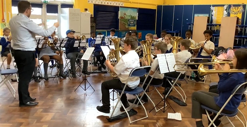 The extra-curricular Brass Band is made up of year 5 and 6 pupils. This ensemble gives our year 5 pupils the opportunity to embed the skills they have learnt during whole class cornet lessons. Some of our year 6 students are playing different instruments such as trombone, French horn and euphonium which they have only started learning recently in after-school elective lessons. In their first rehearsal, the musicians rehearsed each part individually before working hard to play as an ensemble.